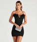 Demure and dreamy, you'll be a daring diva in this marabou feather trim crepe mini dress! It features a sleeveless square neckline with a wired V-notched design, a marabou feather trim, spaghetti straps, a fitted bodice, and a form-hugging silhouette with a mini-length hem. Style this sexy short dress with block heels for a club night!