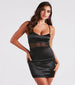 You'll be the elevated factor in this satin mini dress at the club! It features a sleeveless V-neckline, adjustable spaghetti straps, a sheer mesh waist insert, a bodycon silhouette, and a mini-length hem. Complete the look with statement earrings.