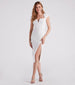 Chic with stylish sophistication, the Elise formal short sleeve midi dress is a staple for cocktail parties. She features a square neckline with a wired notched front design, short cap sleeves with shoulder pad inserts, high waist seams, a midi-length hem with an alluring high side slit, and a form-hugging silhouette. The smooth crepe fabric offers a moderate stretch. Perfect for brides, pair with strappy stilettos for your engagement party or bridal shower.