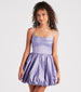 Create an adorably-stylish look for parties in the Ellie sleeveless bubble hem skater dress. She features a square-shaped cowl neckline with pleating, a built-in padded bust, adjustable spaghetti straps for a customized fit, a high waist with a corset seam design, a short pleated skater skirt with a trendy bubble hem, and a fit and flare silhouette. The woven taffeta fabric includes a full knit lining. Complete the look with rhinestone fringe earrings and platform heels.
