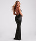 Effortlessly chic, the Elodie satin backless mermaid dress will bring that wow factor to your look. She features a sleeveless V-neckline, spaghetti straps, an alluring open back with a cross-back strap design, a ruched knot accent at the lower back, and a floor-length, slim-fit, mermaid silhouette. The sleek satin fabric has an all-over luxe sheen. Style with rhinestone fringe earrings for your next fancy gala.