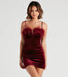 Have yourself an enchanting night in this velvet mini dress perfect for your next dressy affair! It features a sleeveless square neck with a v-wire notch, marabou trim, adjustable spaghetti straps, a lightly padded bust, and a bodycon silhouette. Complete the look in a rhinestone choker and heels!