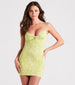 Escape to an island getaway with this tropical mini dress perfect for a sunset dinner by the shore! It features a sleeveless sweetheart neckline, adjustable spaghetti straps, a knotted bust accent, and a bodycon silhouette. The smooth lined knit fabric offers a moderate stretch. Complete the look in trendy sandals.