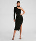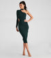 Everyone will only have eyes for you in this one-shoulder sweater dress featuring a long sleeve, flirty choker neck, a side waist cutout, and a form-hugging midi hem with a slit. Pair with strappy stiletto heels to complete the look!