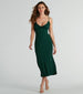 Once you find this sleeveless midi dress you'll want to keep it! Perfect for semi-formal occasions, this midi dress will make you feel chic and effortless. Designed with an adjustable V-neckline with a bust tie, sleek spaghetti straps, and a flattering curve-hugging silhouette that exudes charm. Complete the look with a bolero shrug sweater and strappy stilettos!