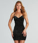 A dreamy glitter velvet mini dress that fits like a glove! Make it shine in this mini dress featuring a sexy V-neckline, spaghetti straps that lace up on the back for a customized style, padded bust, and a sweet bodycon silhouette. Complete the look with a fab ring set and heels for a Vegas night out!