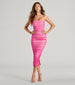Flaunt what you got in this strapless midi dress on a hot night on the town! Â With a sleek and sexy strapless neckline, ruched seams that flatter your curves, and a sultry side slit, this bodycon dress will have all eyes on you. Complete the look with rhinestone earrings and stiletto heels.