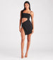 Get ready to flirt up a storm in this cutout high slit mini dress that will bring that sultry allure. It features a sleeveless square neckline, spaghetti straps, an asymmetric side cutout at the waist to show off some skin, a mini-length hem with a high-cut side slit, and a fitted A-line silhouette. The brushed knit fabric offers plenty of stretch. Style with lace-up heels for a night out.