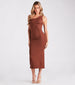 Blow kisses to all of your admirors as you pass by in this chic one-shoulder midi dress! It features a wide shoulder strap and an asymmetrical strappy back design, a bodycon silhouette, and a center back slit accent on stretchy ribbed knit fabric. Complete the look with a sleek bracelet and clutch.Â
