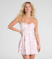 Flirty and adorable, this floral skater dress makes the sweetest impression at showers or birthdays! Featuring a sweetheart neckline with delicate lace trim and a charming bow, this dress is sure to turn heads. The padded bra cups provide a perfect fit, while the skater silhouette and mini-length hem add a touch of playfulness. Complete the look with earrings and strappy heels.