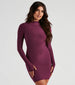 In this sultry bodycon dress, you'll be taken to the front of the line! It features long sleeves with thumb holes, a mock neck with dual button closures, a back keyhole accent, and a mini-length hem, and is composed of a slinky double-lined knit fabric. Complete the look in statement heels.