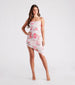 Showcase a flirtatious style in this floral midi dress at your next garden party! It features a sleeveless square neckline, spaghetti straps, ruching down the side seams, an asymmetrical midi-length hem, and a curve-hugging silhouette. The blooming floral print pattern on the lined mesh fabric will garner all the compliments! Style with clear mules.