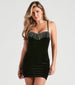 Your glam is looking on fleek with this velvet mini dress designed to show off your shine! It features a sleeveless sweetheart neck, adjustable spaghetti straps, rhinestone fringe trim, a padded bust, and a short, form-hugging silhouette. Complete your dressy look with a necklace and earrings set.