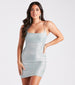 Glimmer, shine, and radiate glamorous vibes on the dance floor in this gorgeous bodycon mini dress. It features a sleeveless square neckline, spaghetti straps, an alluring backless design with a tie-back accent, a mini-length hem, and a curve-hugging silhouette. The dress features glitzy glitter and metallic shimmer woven throughout the fabric for a stunning sheen. Style with rhinestone heels.