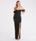 Enjoy the perfect evening in the Glinda formal crepe long dress to bring a sophisticated allure to black-tie events or parties! She features a classy off-the-shoulder, sweetheart neckline with non-slip grip lining and adorable puff sleeve cuffs. Flaunt your curves thanks to her form-hugging slim silhouette that's also designed with a high front slit to show some on the long hem. The formal dress is composed of a crepe fabric with a stretchy knit lining. Complete the look in chandelier fringe earrings for a glam finish!