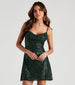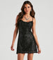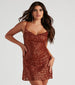 Make major glitzy moves in this glam sequin mini dress! It features a sleeveless cowl neckline, adjustable spaghetti straps for a customized fit, and a short, fitted, A-line silhouette. The lined knit fabric features all-over sequin embroidery for a gorgeous shine. Style this sequin mini dress with platform heels.