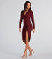 Flaunt your glow in this shimmering glitter midi dress. Featuring fitted long sleeves, an enticing surplice V-neckline, a flattering front ruched seam and bodycon silhouette, and a flirty front slit, this glittering dress makes a bold statement. Complete the look with earrings for a family dinner party!