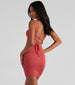 Say hello to your new fave mini dress for day-to-night soirees! Featuring a sleeveless, square neck, spaghetti straps, high waist seam, side ruched seams, and an open-back with lace-up closure. Composed of brushed soft and stretchy knit fabric that hugs your curves like an hourglass. Finish the look in a sleek cropped jacket.