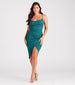 Sparkle at every party or celebration in this glitter midi dress featuring a sleeveless cowl neckline, spaghetti straps, and a form-hugging wrap silhouette that creates the front slit along the midi-length hem. Complete the look with a collar necklace and earrings for extra shine!