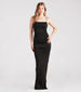 You'll be a vision in the Holly formal dress at fancy dinners and celebrations! She features a sleeveless square neckline, adjustable spaghetti straps, a sultry open tie-back design, and flattering side and back ruched seams that accentuate your curves and a slim long silhouette with a high side slit to show some leg. The formal dress is composed of a smooth knit fabric with a stretchy lining. Complete the look with a glam hair accessory and clutch.