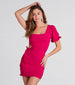Let your style speak volumes with this mini dress perfect for dates or birthday brunch! The mini-length dress features a one-shoulder neckline with a puff short sleeve, a side drawstring cutout, and a flattering form-hugging silhouette on texture woven fabric. Complete the look with an envelope clutch and heels.