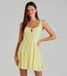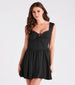Let everyone admire your beauty in this woven skater dress! The sassy sweet dress features a sleeveless sweetheart neckline and shoulder straps with delicate sheer lace trim, a front bust tie, and a corset-seam bodice leading to the flowy short-length hem. The airy woven fabric includes a stretchy knit lining. Complete the look with heeled sandals.