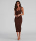 Showcase major it-girl status in this chic lace-up midi dress. It features a sleeveless scoop neckline, tank shoulder straps, an open back with a cross-back lace-up strappy design, a midi-length hem, and a curve-hugging silhouette. Style with clear mules.