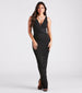 A party in the front and simple and chic from the back. The Janessa formal crepe dress showcases a head-turning style for anniversary parties, weddings, and banquets! She features a sleeveless plunge V-neckline with a sheer mesh trim insert, tank shoulder straps, a front bow design that gives your waist a cinched look, a form-hugging silhouette, and a back slit accent and long hem. The formal dress is composed of a lined crepe fabric with a moderate stretch. Complete the look with a glam necklace.