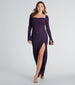 Everyone will have a sparkling attraction to the Jess formal glitter long dress as you shine through the night! She features fitted long sleeves with flared slit cuffs, a cowl neckline, a curve-hugging slim silhouette, and a flattering high front slit along the floor-length hem. The formal dress is crafted from glitter knit fabric that shimmers with every step and has a stretchy knit lining. Complete the look in statement earrings for a black tie holiday soiree!