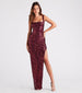 Stunning at charity galas and red-carpet events, the Jolena formal dress radiates glamour everywhere you go! She features a sleeveless square neck, tank-style straps, a form-hugging silhouette, and a sexy high-cut side slit along the floor-length hem. The formal dress is composed of a sequin-scroll patterned mesh fabric with a sewn-in knit lining and moderate stretch. Style with a chic clutch and heels to complete your dressy look!