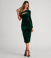 Prepare for all the jaws to drop when you're seen in the Kacie formal velvet dress at the annual holiday party! She features an elegant one-shoulder neckline, a long sleeve, a cutout bust, and a form-hugging, midi-length slit hem. The formal dress is composed of a luxuriously soft velvet fabric with a sewn-in lining and moderate stretch. Complete your dressy look in glitzy heels and a clutch.