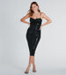 The Kallie formal ruched midi dress is an iconic style for cocktail hour or an elevated party! Designed from a trendy foiled metallic knit fabric, she features a sleeveless cowl neckline, spaghetti straps, all-over ruched detailing to flaunt your gorgeous figure, a mid-length hem, and a bodycon silhouette. Complete your chic look in this formal dress with rhinestone fringe earrings and strappy stiletto heels.