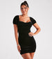 Flirty perfection for GNOs, bachelorettes, or rehearsal dinners, the Kandice velvet party mini dress is simply irresistible! She features adorable puff short sleeves, a sweetheart neckline with a cowl draping, a bodycon silhouette that flaunts your curves, and a mini-length hem. The party dress is composed of a luxe velvet knit fabric with all-over rhinestone embellishments and has a bust lining. Complete the look with a glam bracelet and earrings.