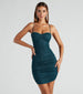 Keep your night-out look glitzy and fab in this shimmery glitter knit mini dress! Featuring a sleeveless sweetheart neckline with a padded bust, spaghetti straps that lead to a lace-up strappy design, ruching, and a fitted bodycon silhouette, this dress will hug your curves. The glitter knit fabric offers a moderate stretch. Style with rhinestone fringe earrings.