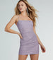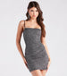 This glitter crepe mini dress is your key to sparkle all night long! The dress features a sleeveless square neckline with spaghetti straps, and a side pleated seam to give you an hourglass appearance along the bodycon silhouette. Complete the look with a chic choker and heels.