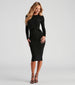 This crew neck midi dress will be pleased to be added to your fashion closet! It features long fitted sleeves, a form-hugging silhouette, and a front knot accent at the waist. The slinky knit fabric offers a moderate stretch. Complete the look with strappy heels.