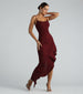 The Kylie formal glitter dress will ensure no one overlooks your entrance. She features a cowl neckline, form-hugging slim silhouette, and glitter crepe knit fabric, this sleeveless dress makes a statement with its sophisticated side slit trimmed with elegant ruffled trim. An eye-catching piece for any evening event, this long-length hem will have you glittering as you make your grand entrance. Complete the look in platform heels and clutch for a school dance or red carpet occasion!