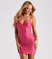 It's time to party in this sultry-glam rhinestone mini dress! It features a sleeveless V-neckline, adjustable spaghetti straps for a customized fit, a mini-length, bodycon silhouette that will accentuate your curves, and all-over rhinestone embellishments for the prettiest sparkle. The lined knit fabric offers a moderate stretch. Complete your look with rhinestone hoops and clear heels.