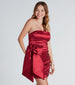Your fabulous presence in the Lindsay taffeta bow mini dress will be such a gift to everyone at holiday parties, banquets, and school dances! She features a strapless neckline, a padded bust, a pleated bodycon silhouette, a statement side bow that adds a captivating touch of chic, and a mini-length hem. The formal mini dress is crafted from a taffeta woven fabric with a subtle sheen for an effortless glow and has a sewn-in knit lining to provide comfort. Complete the look in sassy platform heels and a bolero.