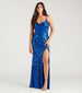Twinkle like a star in the Lissa formal sequin dress that brilliantly shines all night! She features a sleeveless sweetheart neckline with a wired insert, a padded bust, spaghetti straps that create the lace-up back design, a high front slit, and a flattering mermaid silhouette that highlights your curves along the floor-length hem. The formal dress is crafted from a stunning sequin scroll embellished pattern on mesh fabric with a stretchy knit lining. Complete the look for a school dance, gala, or fancy soiree with a necklace and heels.