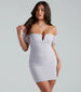 Love yourself in this mesh mini dress as a bride or birthday queen! The dress features a rhinestone embellished off-the-shoulder neckline with a V-wire insert, sheer puff short-sleeve cuffs, ruched side seams, and a bodycon fit. Complete the look with statement earrings.