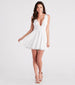 You'll be the loveliest of them all in this chiffon skater dress - a stunning option for bridal showers, graduations, or dressy parties! The short dress features a sleeveless plunge V-neckline along the front and back, a ruched high waist, and a flowy fit and flare silhouette. Complete the look with rhinestone block heels for some shine!