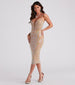 Fancy yourself as a radiant beauty in the stunning Luisa party dress? Every jaw will drop when you step into the formal dance or celebration in this sparkling midi dress featuring a sleeveless V-neckline with a sheer mesh insert, rhinestone embellished and adjustable spaghetti straps, and a bodycon silhouette. The party dress is composed of a partially lined mesh fabric with all-over rhinestone and faux pearl embellishments in a clustered vertical design to accentuate your curves! Style with fringe earrings and clear block heels to complete the look.