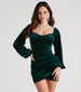Bring the luxe style to your dinner date look with this chic velvet mini dress! It features a sweetheart neckline with a padded bust, a corset-designed bodice with piping at the bust, long balloon sleeves, a short hem with a wrap-front design, and a curve-hugging, bodycon silhouette. The smooth velvet fabric offers a moderate stretch. Complete the outfit in this mini-length dress with strappy stilettos.