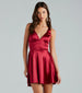 Experience the perfect blend of beauty and elegance with this Macie satin skater dress at homecoming and formal parties! Featuring a sleeveless plunge V-neckline and an open lace-up back for a customized fit, this dress will flatter your figure and add glamour to your look. Enjoy a classic skater silhouette in a short-length hem made from luxurious satin-knit fabric. Complete the look with gorgeous rhinestone jewelry to add an elegant shine!
