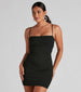 Make your mark as the best dressed in the club! This crepe mini dress will be the hit of the night featuring a sleek, sleeveless, square neck, spaghetti straps, an open caged back design, and a bodycon silhouette. Complete the look in glam earrings.Â