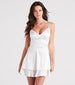 Floral jacquard brings sophistication to the Maggie party dress perfect for twirling in all night! She features a sleeveless v-neckline, dual adjustable spaghetti straps, a lightly padded bust, and a princess seam bodice that leads to her tiered, ruffled skater silhouette on a short-length hem. The formal dress is composed of smooth woven satin with lining and no stretch. Complete your dressy look with a sparkly hair accessory and heels.