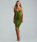 Midi dresses like the iconic Mailee formal velvet midi dress will radiate sophistication! She features a sexy plunge V-neckline with pleated detailing, spaghetti straps, a form-hugging silhouette to showcase your curves, and a midi-length hem with a wrap silhouette creating a front slit. The formal dress is composed of a luxe velvet fabric with a super soft feel. Complete the look with a statement choker and earrings for a cocktail soiree or banquet!