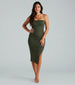 For casual plans and outings, make your look cute in this sleeveless midi dress perfect for inspiring your inner fashionista! It features a square neck, spaghetti straps, a form-hugging fit, a side ruched seam that accentuates your curves, a side slit, and a midi-length hem. Complete the look with a crop jacket and heels!