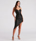 Make your night shimmer in this sequin midi dress to make a stunning impression! It features a sleeveless V-neckline, spaghetti straps, a lace-up open-back design, a bodycon silhouette, and an asymmetrical hem with a side cutout slit. Style with rhinestone heels for extra sparkle!